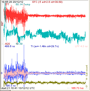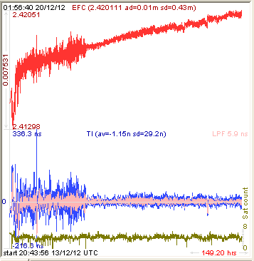 The errors while in mobile mode are even worse than I remembered, up to 400ns. It’s clear when I turned the units to position hold mode as the phase errors basically collapse at that time.